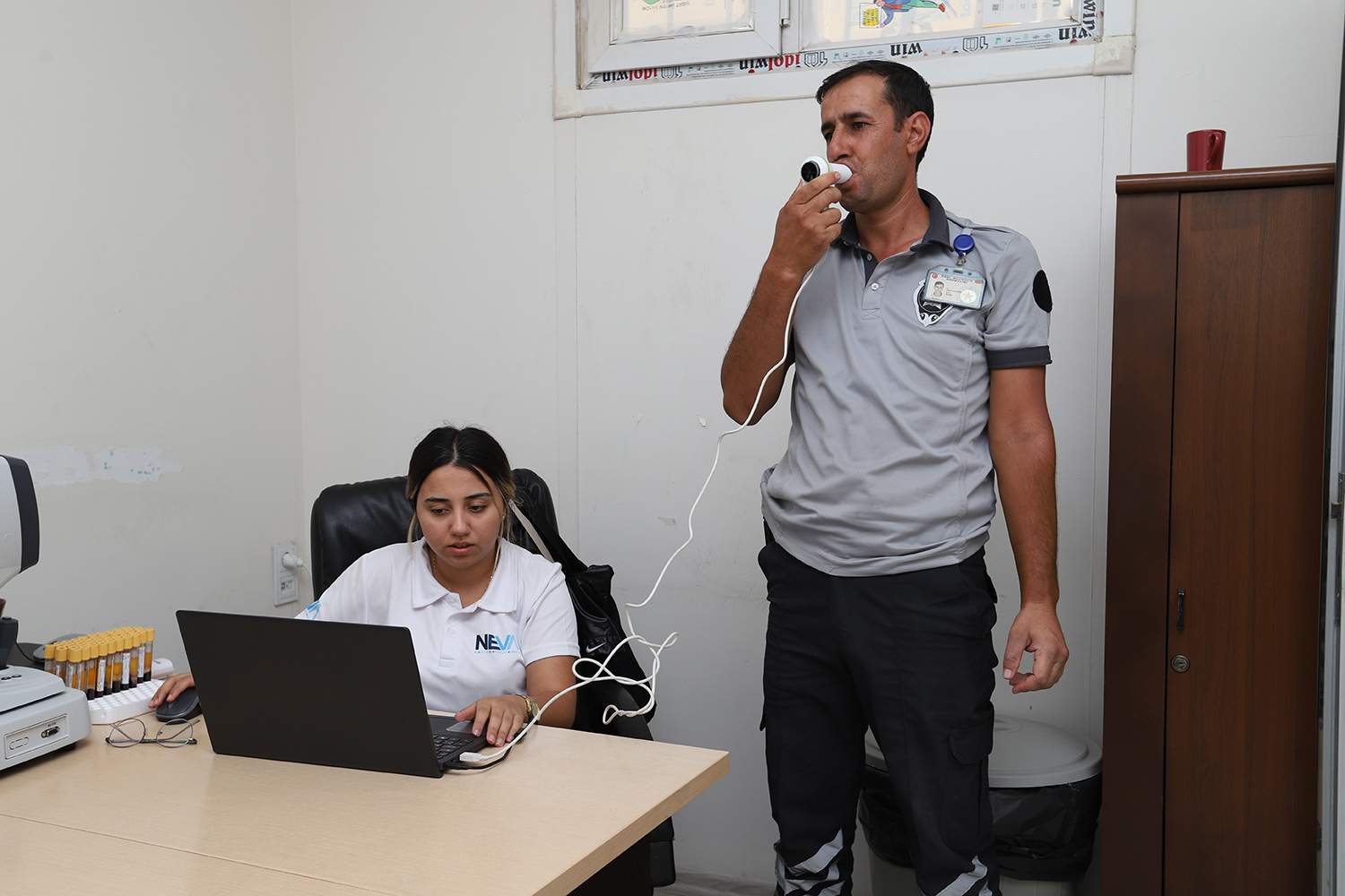 Çalışma koşulları ve maruziyet profilleri dikkate alınarak personele risk odaklı sağlık taraması uygulandı. Bu kapsamda uzman ekipler, hemogram ve biyokimya testleriyle karaciğer ve böbrek enzimlerini ölçtü, gerektiğinde akciğer filmi çekildi, işitme (odyometri) testleri yapıldı ve göz muayeneleri gerçekleştirildi.